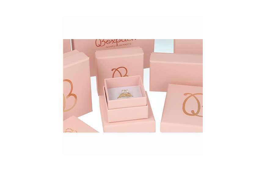 Cajas personalizables de cartón forrada en papel lamindado mate, disponible en color rosa. Interiores de espuma reversible aterciopelada en color blanco y negro, cartón no reversible en color negro o blanco para joyas bisuteria y joyeria.