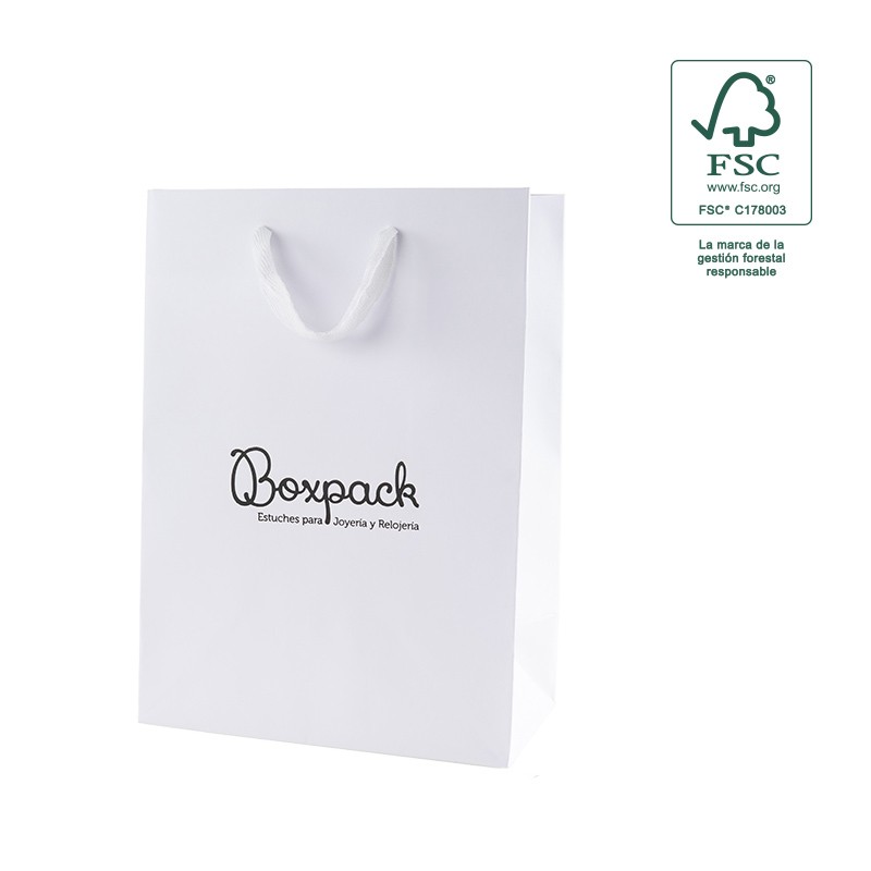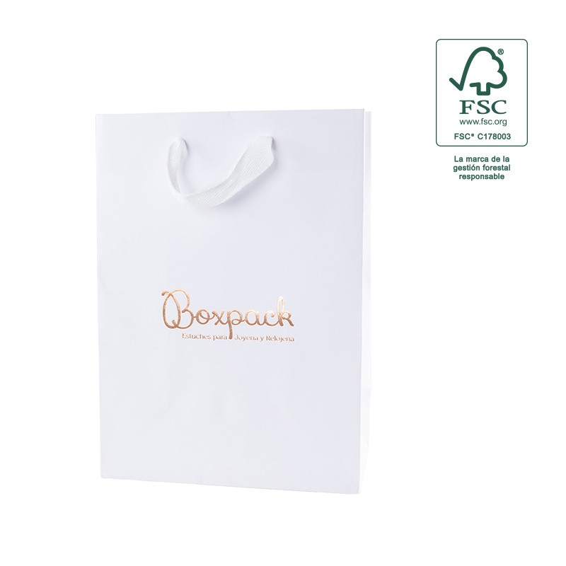 Bolsa ecológica de papel FSC® MIX con asa de cinta de algodón para joyería y bisutería.
