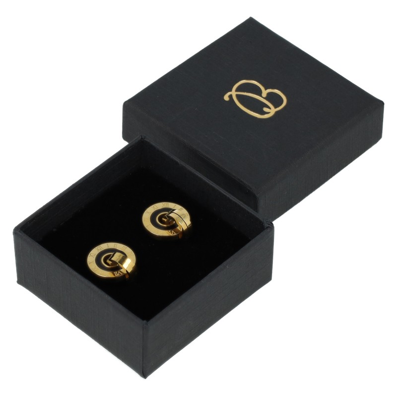 - Caja para pendientes disponible en colores negro, rojo y azul.