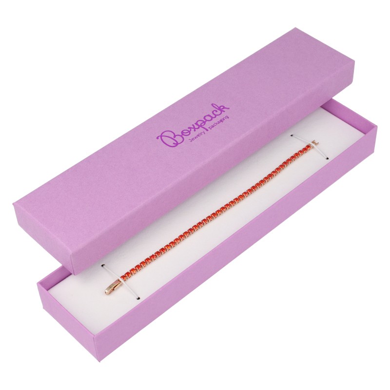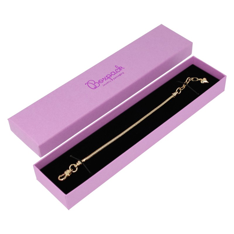 - Caja para pulsera extendida disponible en color morado.