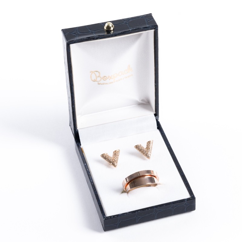 Estuche para juego (sortija y pendientes) de joyería, bisutería y joyas.