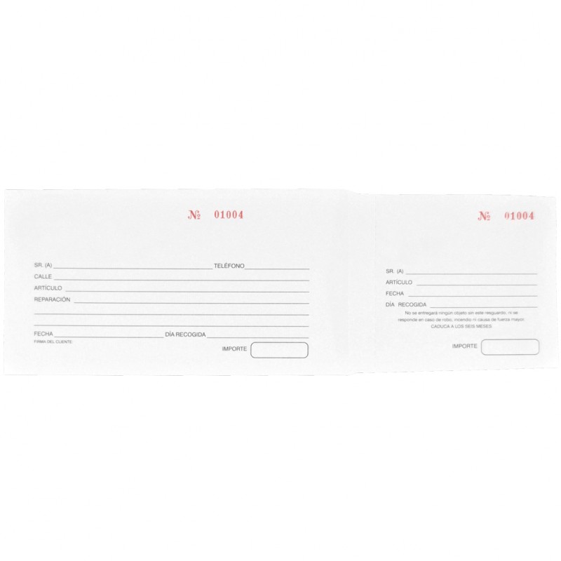 Sobres de compostura numerados con resguardo para reparaciones de joyería, joyas, bisutería y relojería.